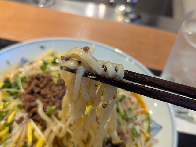 フゥフゥしながら一口、うん味噌ベースの和山椒で少し辛いスープがもちもち麺に絡みつき、周りの薬味野菜がそれをいい感じに中和している。