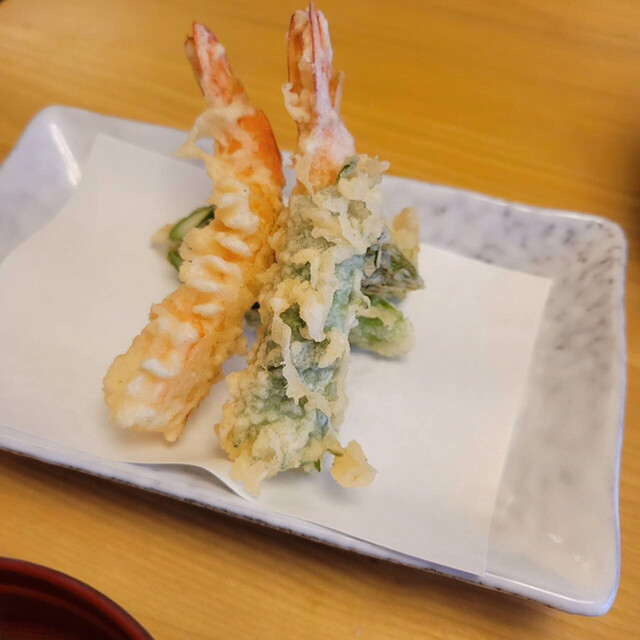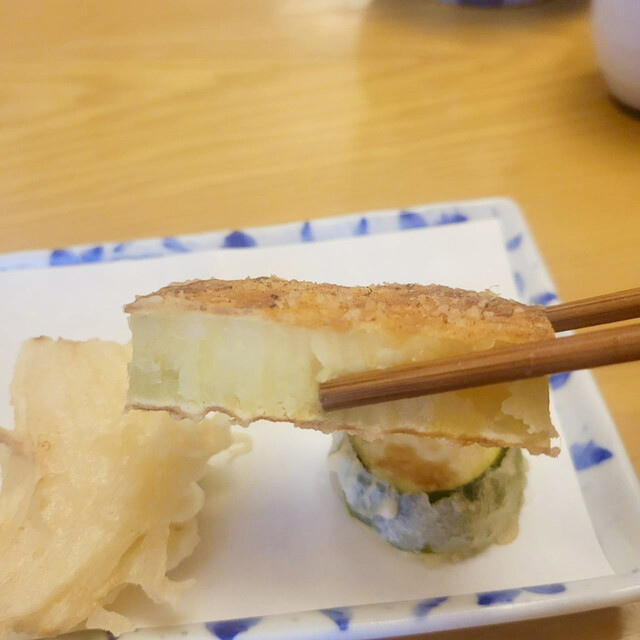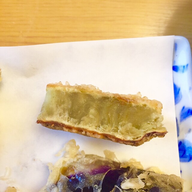 昔は大きな海老、2尾で一つは紫蘇巻きといのがありました。今でも、カウンターだったり、平日ならそれらもあるっぽかったのですが、休日テーブルはほぼなし。私も紫蘇巻き海老は3年ぶり位です( ; ; )