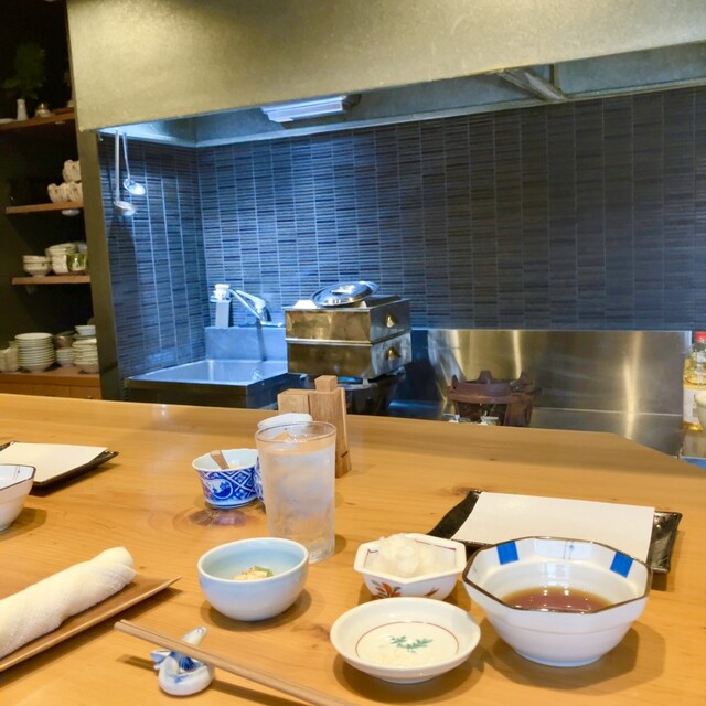 ただ、一般的には大将が揚げている姿を見られるし、揚げたてを提供してもらえるカウンターがお勧めです。
