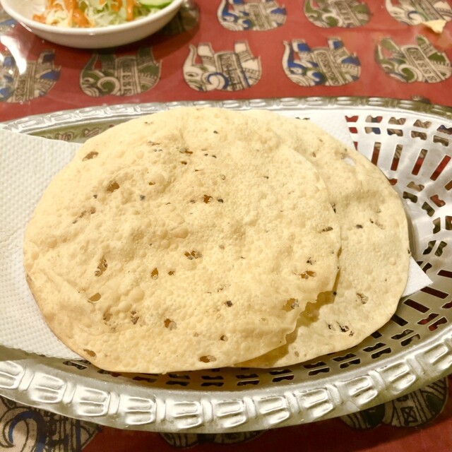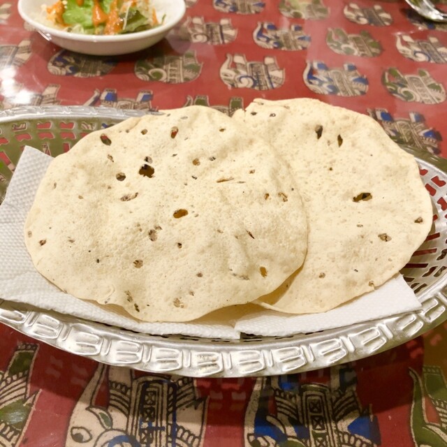 (パパド、サラダ、ナンorライス、豆カレーor野菜カレー、ドリンク)