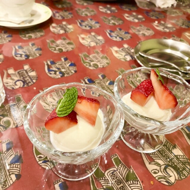 席に着いたら先週、2周年のプレゼントのお返しでいただいた、インドのお菓子のお礼を。