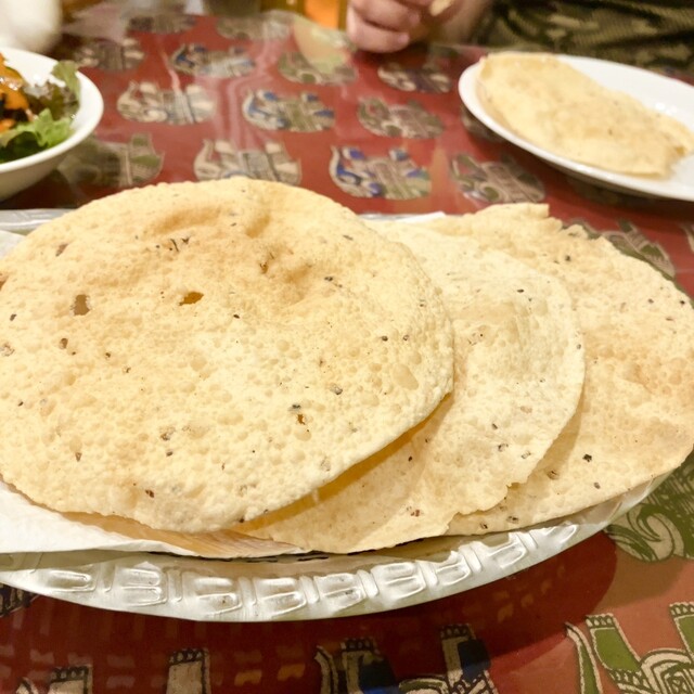 パパドは美味しいおせんべい。今日は久しぶりに結構白いタイプ