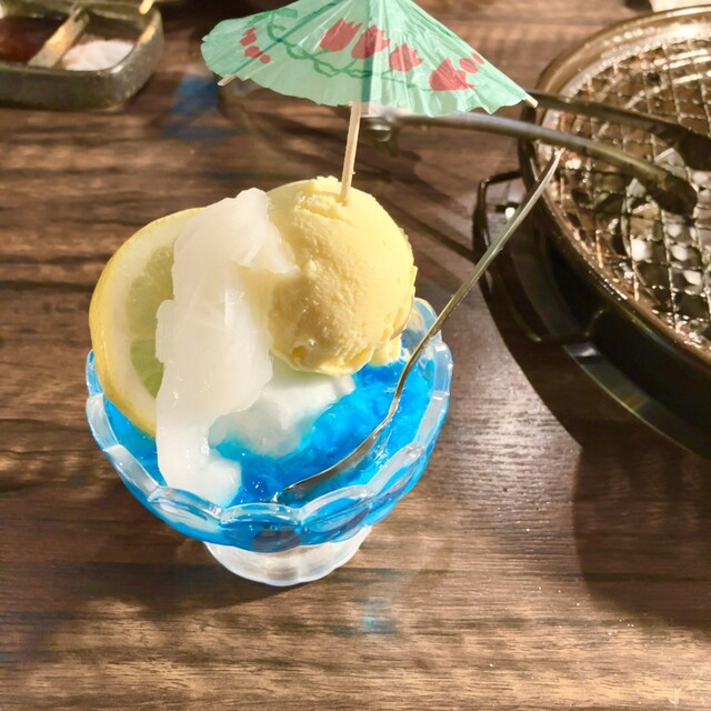 ・海のアイスはソーダアイスとソーダゼリーの上にカルピス氷とバニラアイスという個人的には最強のアイス。これは絶対にリピです。しかも、今日は私達が無理言って、18時からの予約を1時間枠で確保して、その時間を伸ばすために早めの訪問をしたのに