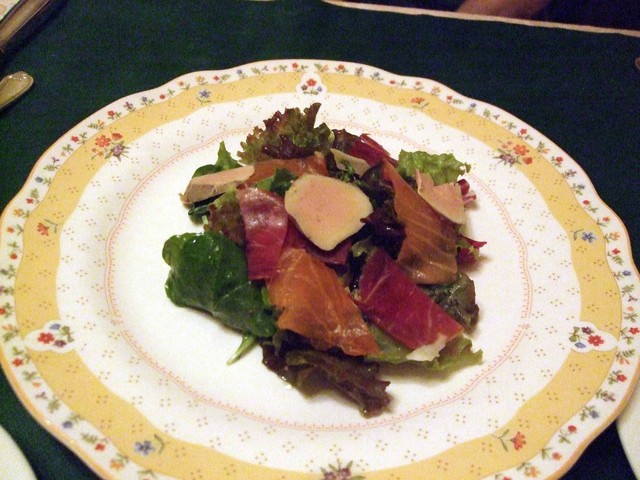 奥の個室に案内され、プレフィックスのコース料理を注文。値段も安い。車で来ていることがわかっており、マダムは飲物の注文は一切聞かずにお水を運んできてくださる。やりますなあ。