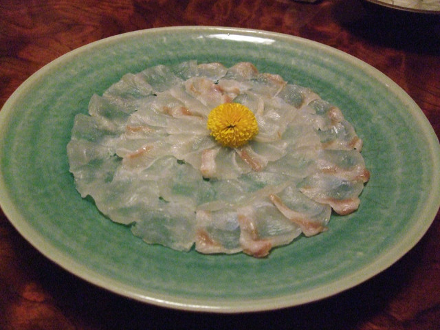 続いては淡路島産のヒラメ。上にのっているえんがわを口に掘り込む。う~ん、すごい。脂でトロトロじゃあないですか。これがえんがわですか?別世界の食べ物である。もちろん刺身もコリコリして美味しい。