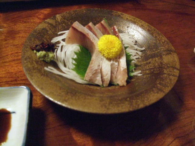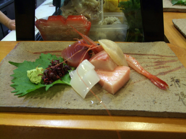カウンターに陣取り、ビールを飲みながら歓談していると、ご主人が何気なく造りを皿に乗せていってくれる。