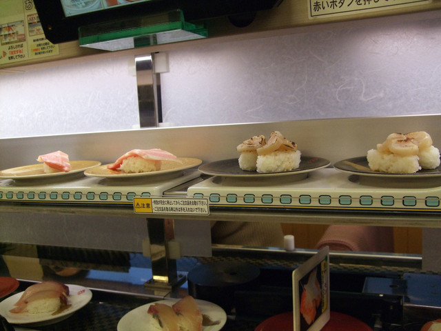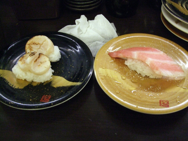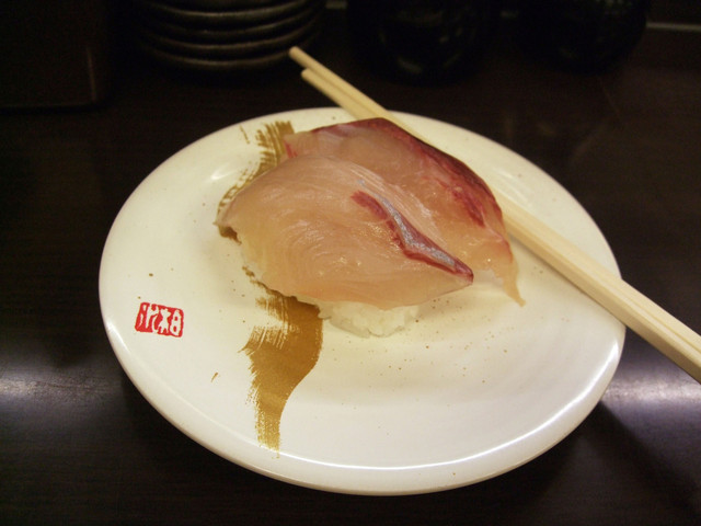 カンパチを取る。まずはネタの分厚さに驚く。うん、旨い。回っている皿にもかかわらず、そのネタの新鮮さに驚く。