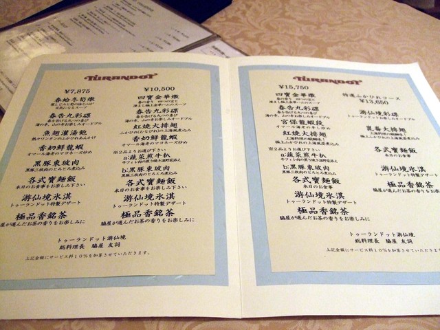 東京の知人と久しぶりに会うので、どこかいいレストランを予約してと頼んでおいたら、ここを予約してくれた。森美術館のある六本木ヒルズからすぐだと言われ、美術展を見た後、一路アークヒルズに向かって寂しい坂道を下っていく。六本木だから人だらけかと思いきや、誰も歩いていない。この方向でええやろんかと不安になる。アークヒルズに着いてトゥーランドットらしき中華レストランの外装が見え、ほっとする。