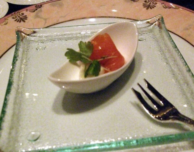 仕度にやや時間がかかって、スパークリングワインを飲みほした後に運ばれてきました。