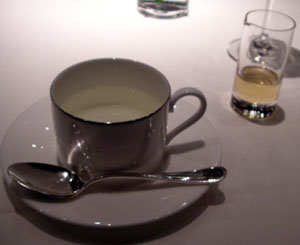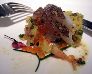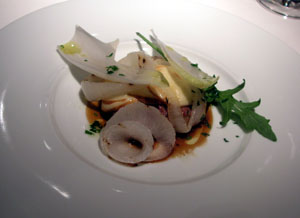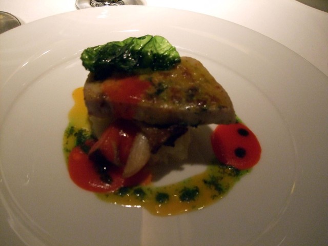 シェフもご存じなんだろう、ちゃんと甘鯛の下に蕪を同じ大きさに切って敷いてある。つまり甘鯛と蕪を一緒に切って食べろと言うメッセージである。