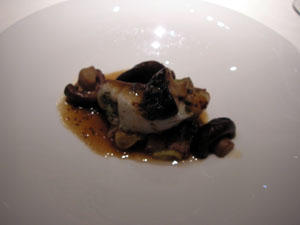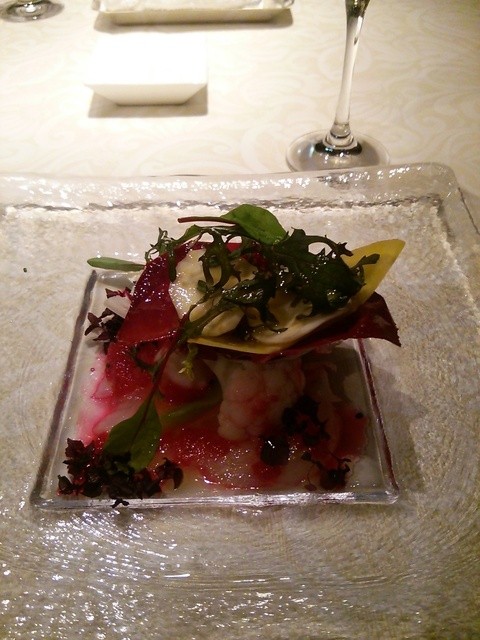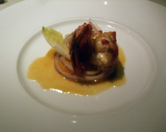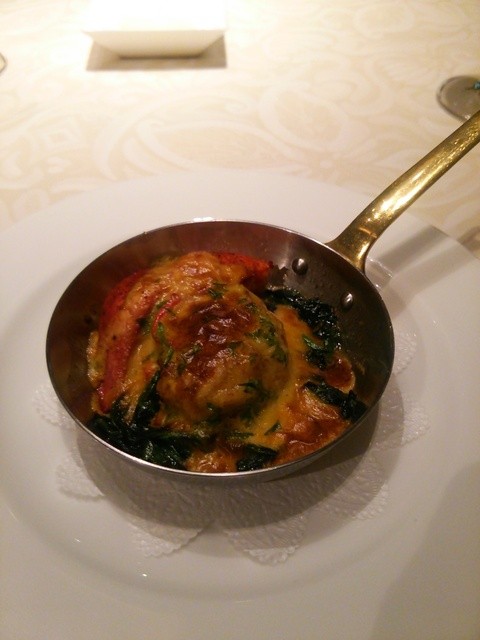 まずは爪の身。美味いです。フォアグラとニンニクのソースがすごい。最高です。