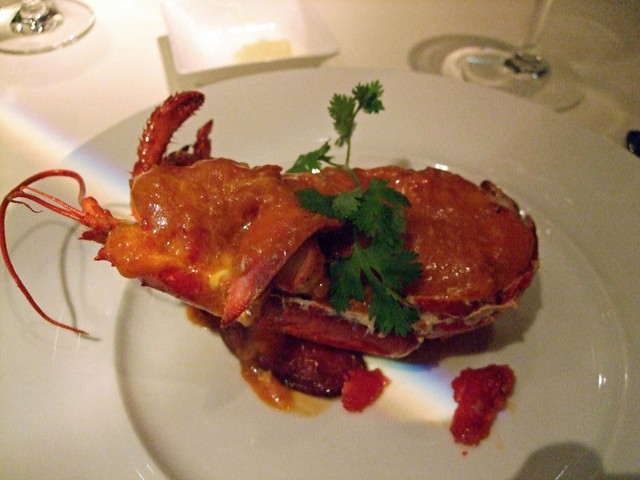 オマール海老のポワレ 柑橘クリームソース。お目当てのオマール海老。でもちっちゃ~い。値は張ってもいいからもう少し大きいのが食べたかったなあ。味は言うことなし。ソースとの絶妙なマリアージュ。
