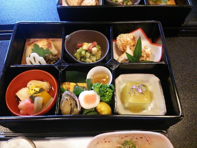 弁当はまさしく山海の素材がふんだんに散りばめてあります。