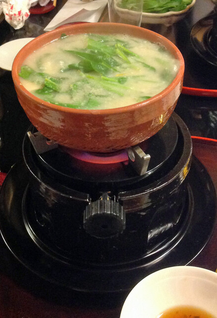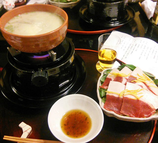 ふかひれ、九条ねぎ入り すっぽん鍋