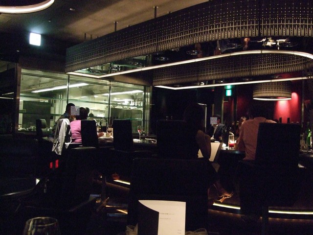 店内にはいると、ヒルトンの上のラウンジのような雰囲気で、中央にカウンター、周囲にテーブル席がある。予約もしなかったから心配だったけど、窓際に案内される。椅子を動かそうとするが重くて動かしにくい。妻なんか店員さんに手伝ってもらっていた。