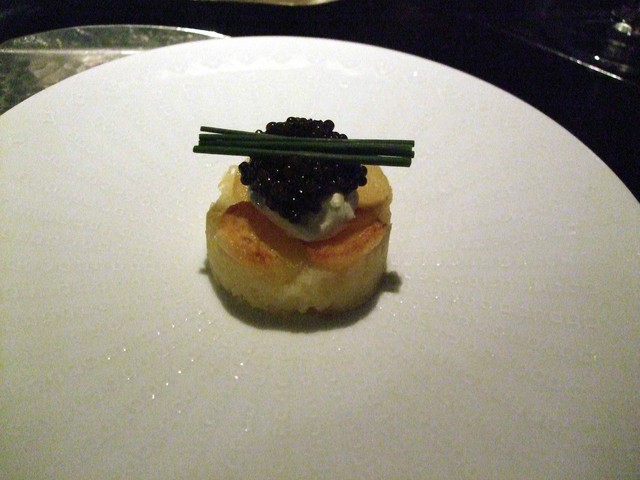 ポテトのティンバッロ。キャビアとマスカルポーネがぜいたく。ポンテベッキオの象徴の逸品。まあすばらく美味しいものではないが、まあまあかな。