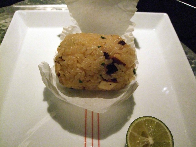松茸と鱧のリゾット。リゾットとは言うものの完全にちまきである。米ももち米かな。すだちをしっかりかけていただく。