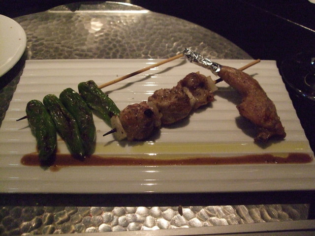 ウズラとしし唐の串焼き。大吉状態である。20歳の若い男性店員に大吉が通じなかった…。淋しい…。でもウズラが美味しい。
