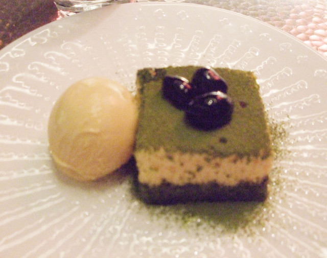 ドルチェは抹茶ティラミスときび糖ジェラード。アイスが非常に美味しかった。