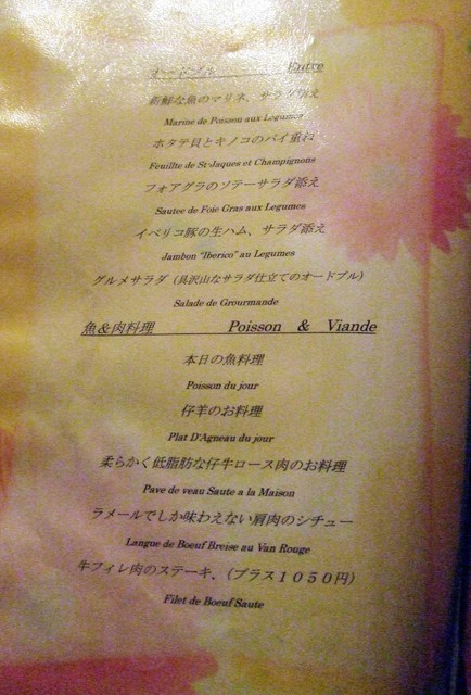 奥の個室に案内され、プレフィックスのコース料理を注文。値段も安い。車で来ていることがわかっており、マダムは飲物の注文は一切聞かずにお水を運んできてくださる。やりますなあ。