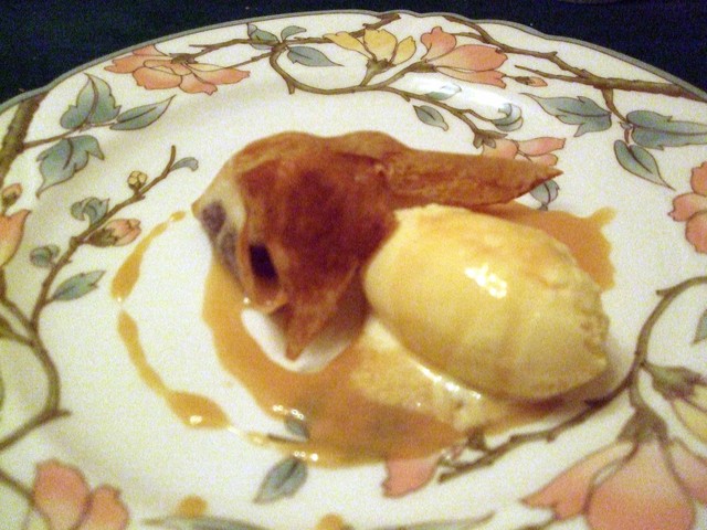 デザートは、イチジクをパイ生地で包んで揚げてある。添えられたアイスもワイン仕込み。これが今回、最高に美味しかった逸品である。