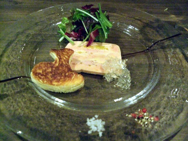 ”フォアグラと鴨の店です”というキャッチフレーズだから、フォアグラ料理はかなり期待したのだが、やっぱり7500円のコース。フォアグラの入ったテリーヌであった。パンにつけていただくと美味しいのだが、フォアグラの塊を期待していただけにやや…。