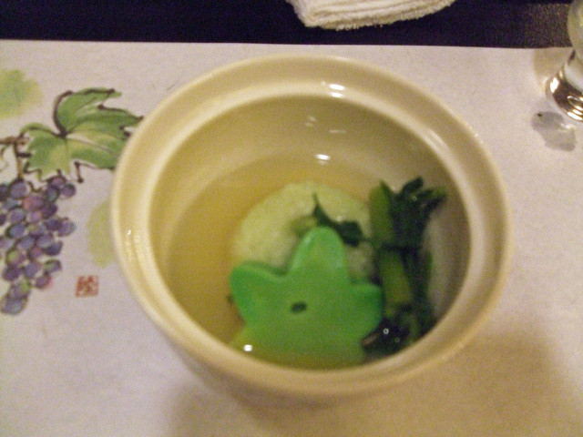 吸物はワラビと海老の二色身丈。出汁は以外にも関西風でした。