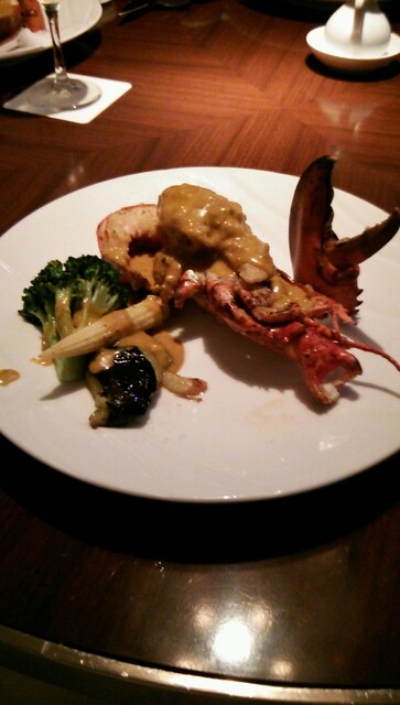 オマール海老はカレー風味にしてありました。