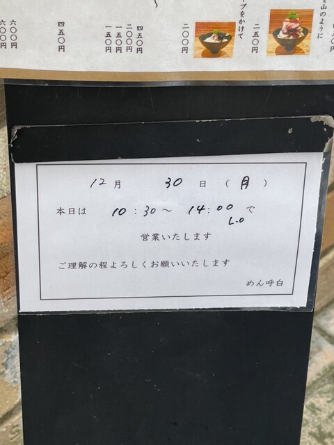 今年のラーメン納めも”めん 呼白”さんに行ってきました♂️