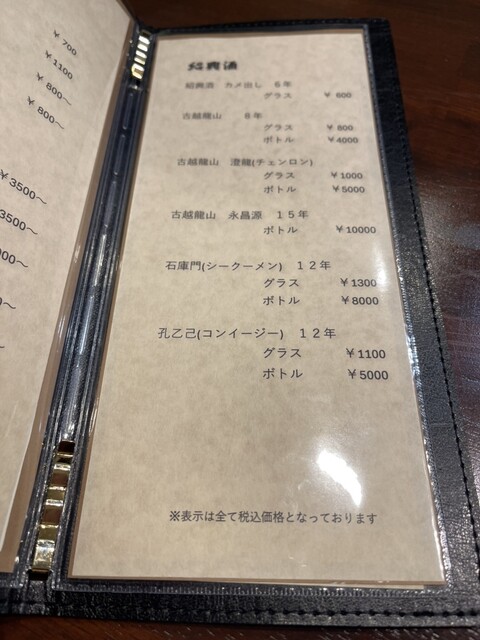 ドリンクの方は、青島プレミアムの他に、紹興酒を3種類飲みましたが、特にシークーメンが上質なシェリーのようで好みの味でした