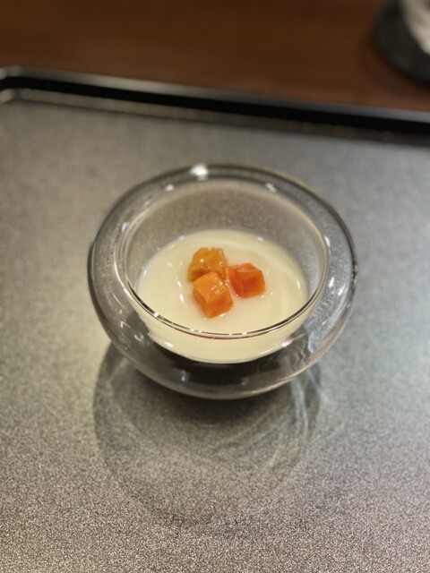 •杏仁豆腐 富有柿(杏の種から出汁をとっている)