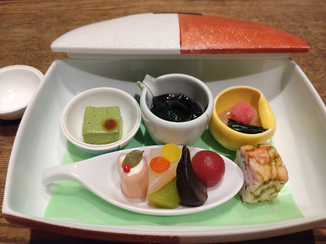 寛永元年創業の老舗の代表菓です。なめらかなこしあんを本わらび粉のお餅で包み、青大豆黄奈粉がまぶしてあります。口の中でとろける柔らかさとおいしさ、もっと買ってこなかったこと...