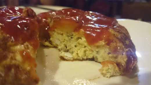 出てきたのは豆腐と鶏肉なだけに白っぽいハンバーグ