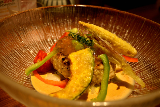 地鶏の夏野菜たっぷり!!冷製坦々ハンバーグ ¥値段わすれた