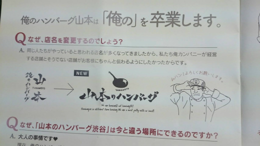 山本のハンバーグは俺のハンバーグから卒業したとの事で、今ある俺のハンバーグは俺のハンバーグ山本とは関係無いそうです。