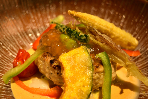 地鶏の夏野菜たっぷり!!冷製坦々ハンバーグ