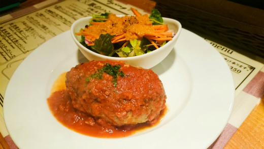 プレーンハンバーグ香味野菜と完熟トマトソース ¥1000+100