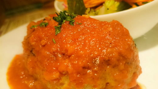 合鴨と豚肉の合い挽きハンバーグに不思議で美味しいデミグラス