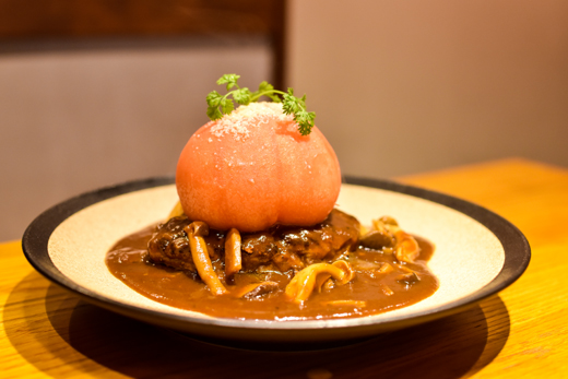 トマト一個丸々どかんと乗っててインパクトたっぷり!おこちゃまにとっては恐怖でしかないこのメニューですが