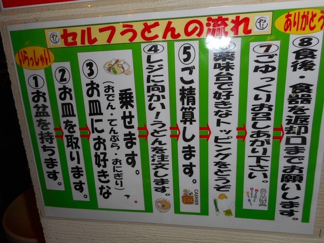 まいど憶良(おくら)です。徳島県は徳島市にやってきました。美味しいうどんを食べたい。今から居酒屋さんに行って、夕食だ、という時間になって、そう思ってしまいました。いや、今からホテルにチェックインして、その後に居酒屋さんに行くんだから、うどんちょっとくらいは食べても大丈夫。などと、嫁を説得し、徳島に行ったらどうしても食べたかった「やま」さんに行きました。セルフうどんの流れをチェックします。サイドメニューをチェック。でも、この後ご飯なのでたくさん食べません。おでんも、人気なんですよね。トッピングを選んで、好きなだけ乗せます。ああ、幸せなひと時。うどん、リフトです。お味は、美味しいの一言。やっぱりいいなぁ、こんなに美味しいうどんを気軽に安く食べられる四国の人がうらやましくて仕方ありません。わかめも、「さすがに徳島」だからなのか、どうなのかはわかりませんが、美味しかったです。あぁ、旨い。こんちくしょー。うまいなぁ。また、来たいと思いつつ、店を後にしました。