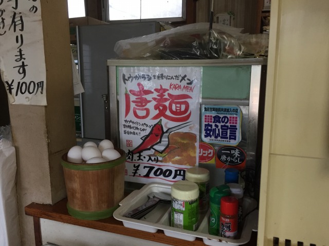 テーブルには唐辛子も用意されていますので、物足りない方は振りかけても良いかと思います。