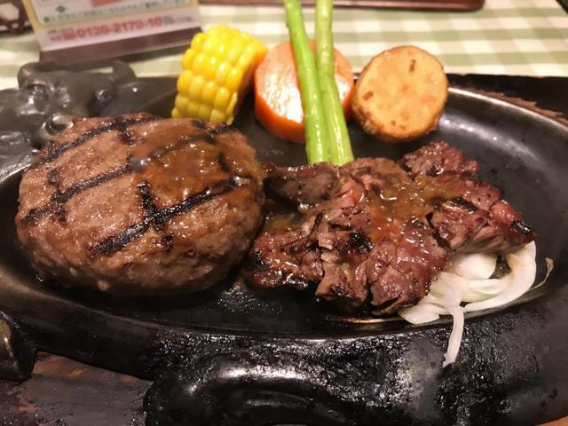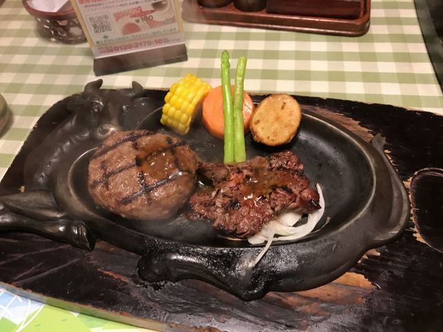 炭焼きステーキフェアという事で、カイノミとハンバーグが食べられて1166円。
