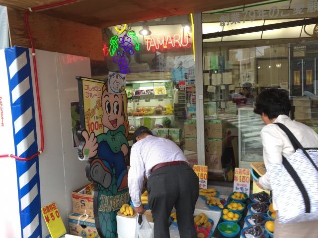 この時はビルが工事中だったのですが、「美味しいオーラ」をビンビンに出している果物屋さんを発見。