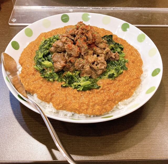 ( ´ω` )スパイスの効いたとても美味しいカレーでした、豆カレーもチキンカレーも私好みで