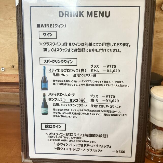 ハウスワイン(蛇口ワイン1時間飲み放題)660円