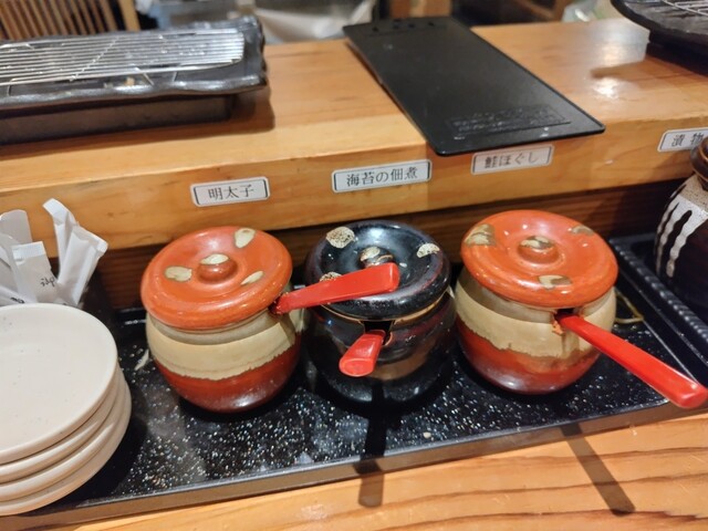 かつ、明太や高菜も食べ放題ですし、お塩も3種あります。