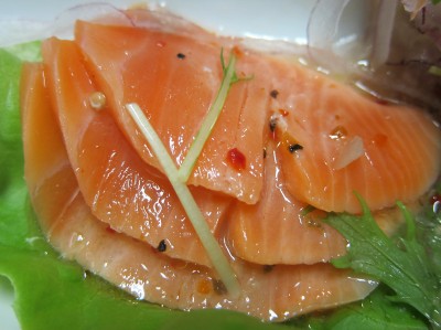 お刺身は、角が立ったブリ、マグロ、そしてボタンエビ。