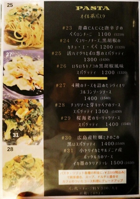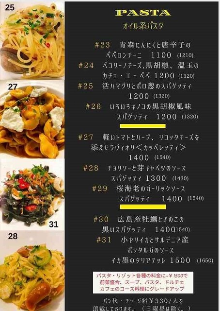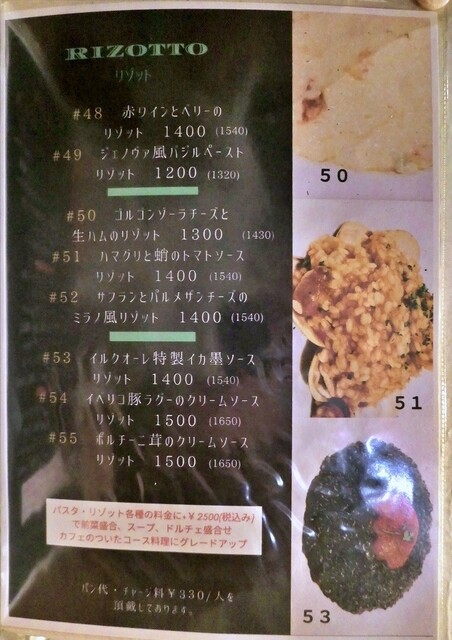 パスタ・リゾット+2500円(税込)で、前菜盛合、スープ、ドルチェ、カフェがセットです。