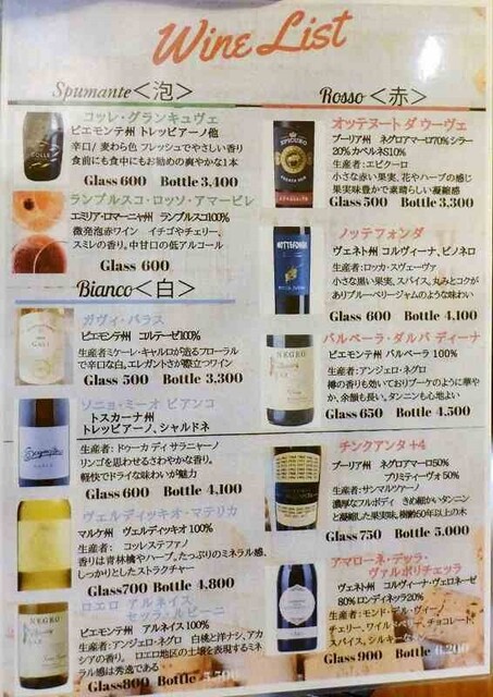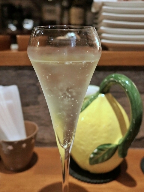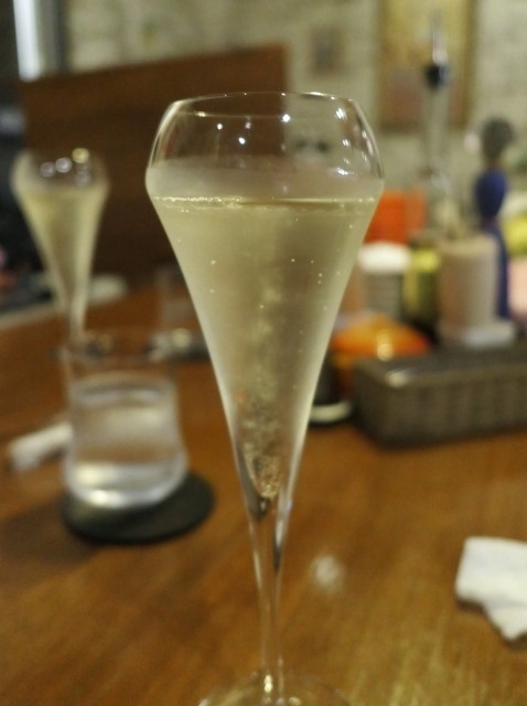 ワインリストからスプマンテ(イタリアのスパークリングワイン)をチョイス。