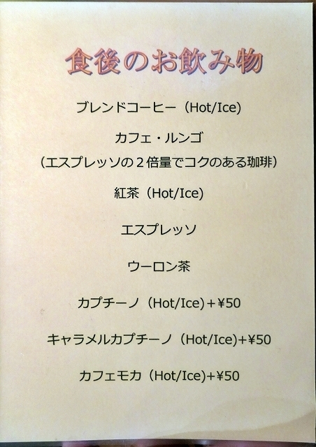 カフェはメニューから選びます。